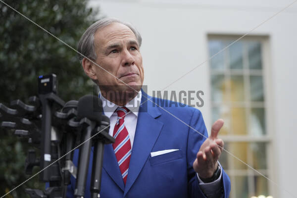 Governor Greg Abbott (Republican of Texas) speaks to the media after meeting in the Oval Office with United States President Donald J Trump, outside the West Wing of the White House