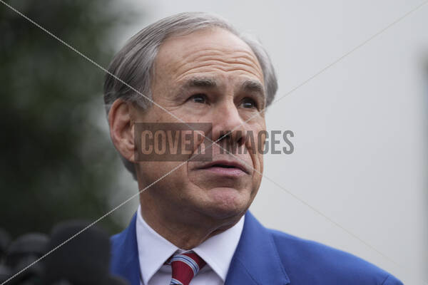 Governor Greg Abbott (Republican of Texas) speaks to the media after meeting in the Oval Office with United States President Donald J Trump, outside the West Wing of the White House