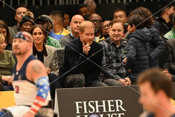 Prince Harry, Duke of Sussex and Meghan, Duchess of Sussex attend wheelchair basketball at the Vancouver Convention Centre during the 2025 Invictus Games in Vancouver