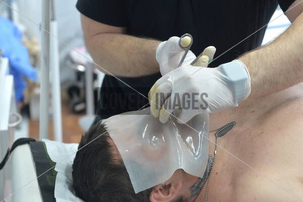 Keywords: Ukraine conflict,Russian invasion,Ukraine war,war,conflict,Russia-Ukraine war,military,army,medicine,healthcare,first aid,stabilisation point,wound,injury,Pokrovsk,Donetsk region,hydrogel,hydrogel dressing,face