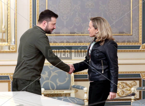 Keywords: politics,foreign affairs,finance,European Investment Bank,EIB,Nadia Calvino,president,Volodymyr Zelenskyy,handshake
