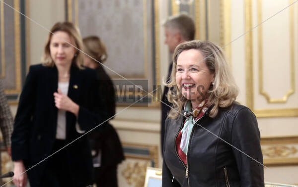 President of the European Investment Bank Nadia Calvino attends a meeting with President of Ukraine Volodymyr Zelenskyy in Kyiv