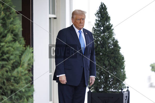 US President Donald Trump is seen outside the West Wing of the White House, after having met with the King of Jordan, Abdullah II Ibn Al-Hussein, in Washington DC