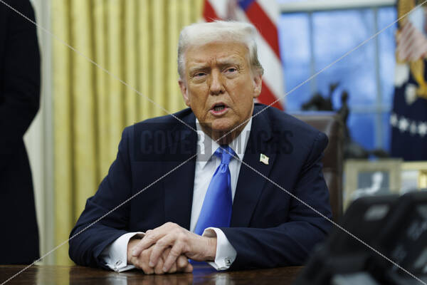 Keywords: 2025,CNP,XXPOOL,February 11,Jordan,Donald Trump,United States,Politics,Executive Orders,Oval Office White House,Presidency,West Wing,CNP Pool