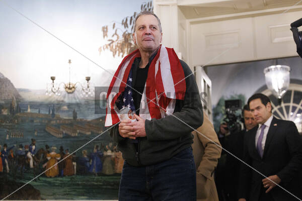Mark Fogel, who was recently released from prison in Russia, is seen in the Diplomatic Reception Room as he meets US President Donald Trump in Washington DC