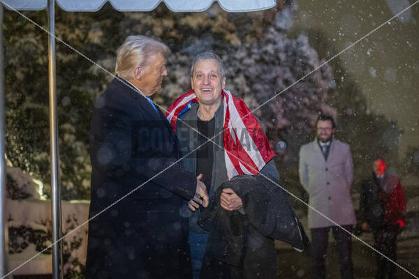 US President Donald Trump welcomes Mark Fogel, who was recently released from prison in Russia, on the South Portico of the White House in Washington DC on Tuesday, February 11, 2025. Fogel has been in captivity since 2021.