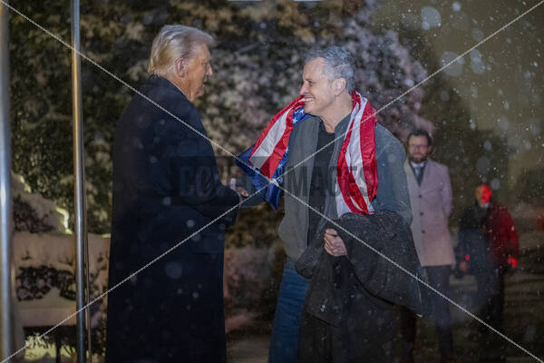 US President Donald Trump welcomes Mark Fogel, who was recently released from prison in Russia, on the South Portico of the White House in Washington DC on Tuesday, February 11, 2025. Fogel has been in captivity since 2021.