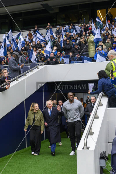 Headline: King Charles III celebrates local community work at Tottenham Hotspur Stadium