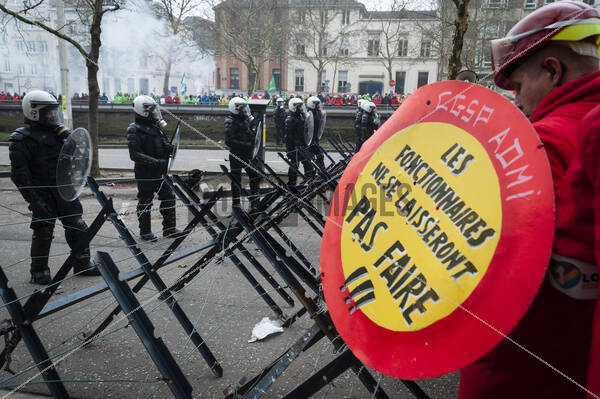 Keywords: Agence Le Pictorium,Arizona,Bart de Wever,Belgium,Brussels,budgets and budgeting,Character,Clashes,clashes (),Committed,Demonstration,Demonstrator,Demonstrator (Female),Demonstrators,economy (general),Education,Firefighters,Georges Louis Bouchez,Justice,money (),MR,national (),NVA,pensions,police,politics,public employees,public sector,Reforms,retired people,social assistance,social breakdown,social issue,standard of living,unemployment,unions,women demonstrators,Europe,Western Europe