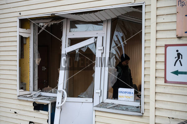 A security control room in the Obolonskyi district is damaged by a Russian ballistic missile strike