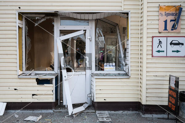 A security control room in the Obolonskyi district is damaged by a Russian ballistic missile strike