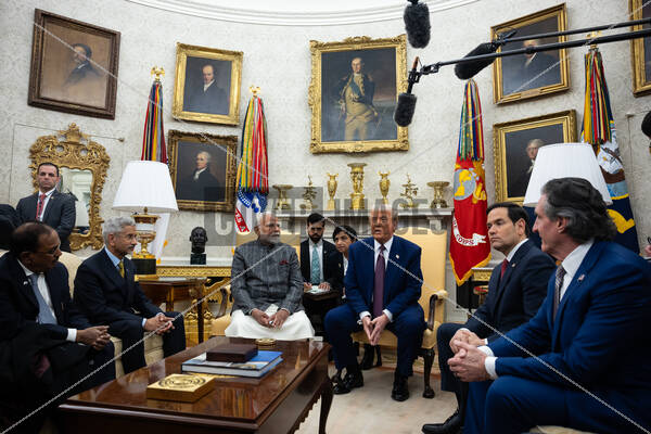 Headline: President Donald Trump meets with India Prime Minister Narendra Modi in the Oval Office