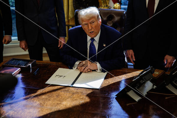 Headline: President Donald Trump signs Executive Orders in the Oval Office