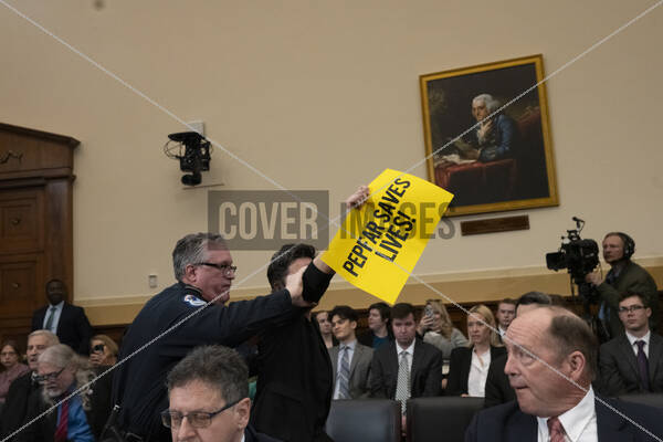 Pro-PEPFAR demonstrators, protesting the defunding of the United States Agency for International Development (USAID), are escorted from a US House Committee on Foreign Affairs hearing entitled “The USAID Betrayal” by US Capitol Police in the Rayburn House Office Building on Capitol Hill in Washington