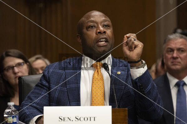 United States Senator Tim Scott (Republican of South Carolina) makes introductory remarks at the US Senate Committee on Health, Education, Labor and Pensions (HELP) hearing to examine the nomination of Linda E. McMahon to be US Secretary of Education in the Dirksen Senate Office Building on Capitol Hill in Washington, DC