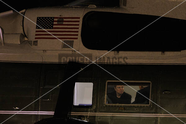 Elon Musk, left, and US President Donald J. Trump, right, are seen on Marine One as it lands on the South Lawn of the White House White House