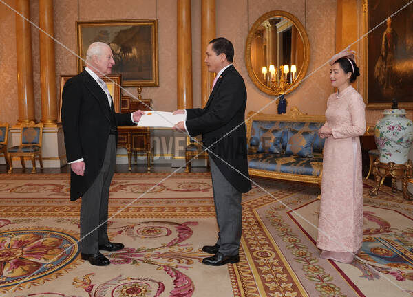 PersonInImage: Do Minh Hung, Ambassador from the Socialist Republic of Viet Nam, presents his credentials to King Charles III, alongside his wife Tu Anh Dang