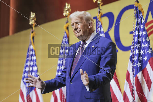 US President Donald J. Trump arrives to address the Republican Governors Association meeting at the National Building Museum