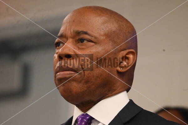 Mayor Eric Adams (Democrat of New York, New York) delivers remarks at a press conference announcing a public safety and quality of life initiative inside of a conference room at the New York City Police Department 40th Precinct as a judge is weighing whether to dismiss his corruption case in Bronx