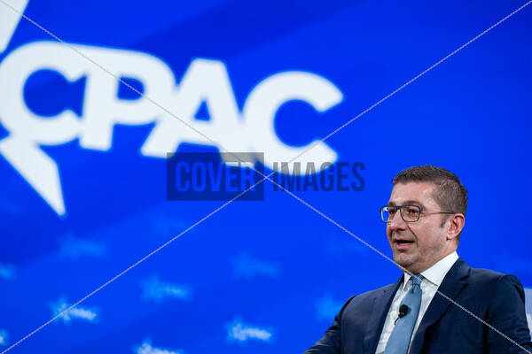 Prime Minister of North Macedonia Hristijan Mickoski speaks at the 2025 Conservative Political Action Conference (CPAC) in National Harbor, Maryland