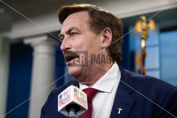 My Pillow CEO Mike Lindell speaks with reporters in the James S Brady Press Briefing Room of the White House