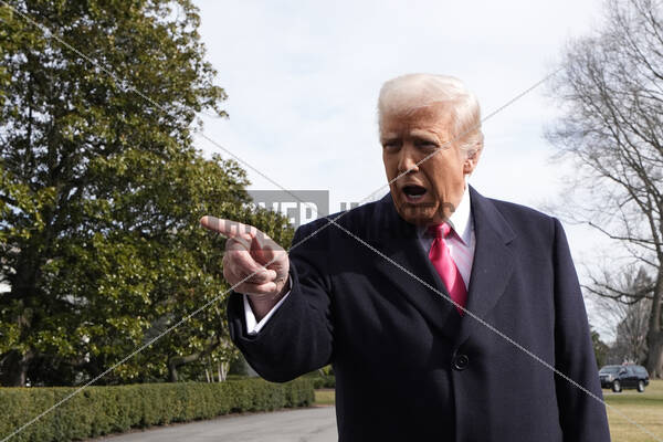 United States President Donald Trump talks to reporters on the South Lawn of the White House before his departure to deliver remarks at CPAC
