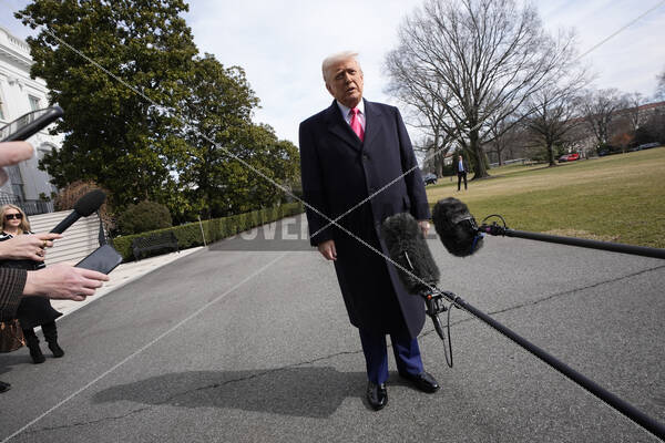 United States President Donald Trump talks to reporters on the South Lawn of the White House before his departure to deliver remarks at CPAC