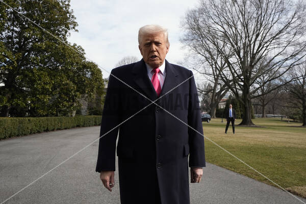 United States President Donald Trump talks to reporters on the South Lawn of the White House before his departure to deliver remarks at CPAC