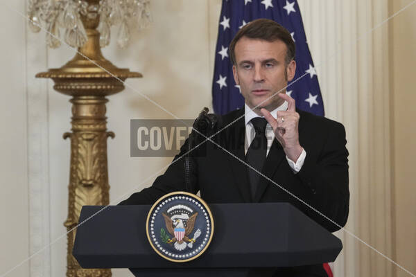 United States President Donald Trump and President Emmanuel Macron of France speak during a joint press conference in the East Room of the White House
