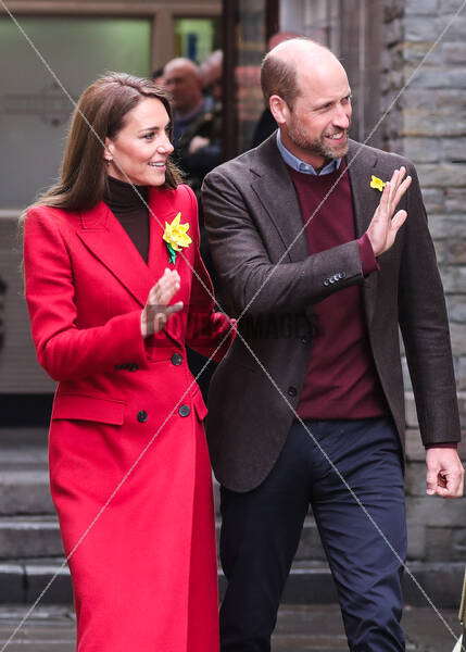 The Prince and Princess of Wales meet locat residents on the departure from Pontypridd Market. Their Royal Highnesses collected flowers and took selfies ahead of St. David's Day.