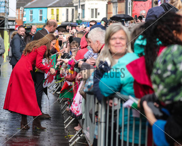 The Prince and Princess of Wales meet locat residents on the departure from Pontypridd Market. Their Royal Highnesses collected flowers and took selfies ahead of St. David's Day.
