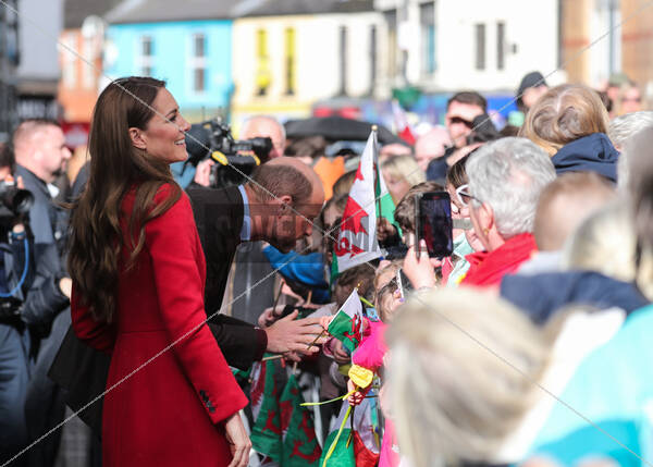 The Prince and Princess of Wales meet locat residents on the departure from Pontypridd Market. Their Royal Highnesses collected flowers and took selfies ahead of St. David's Day.