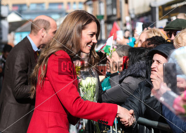 The Prince and Princess of Wales meet locat residents on the departure from Pontypridd Market. Their Royal Highnesses collected flowers and took selfies ahead of St. David's Day.