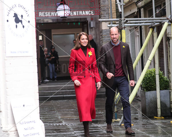 The Prince and Princess of Wales meet locat residents on the departure from Pontypridd Market. Their Royal Highnesses collected flowers and took selfies ahead of St. David's Day.