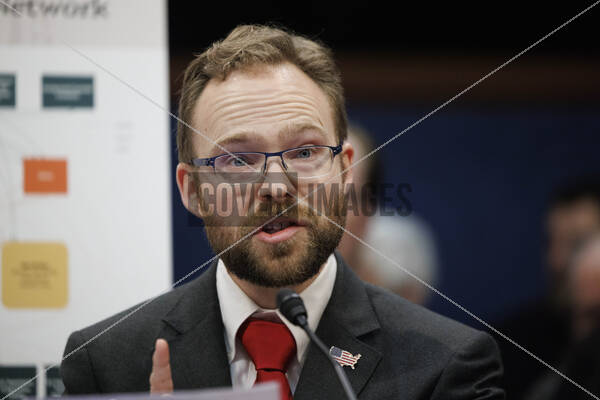 Tyler O’Neil, Managing Editor of The Daily Signal, gives remarks during a House Oversight Subcommittee on Delivering on Government Efficiency hearing on USAID, in the Capitol Building in Washington
