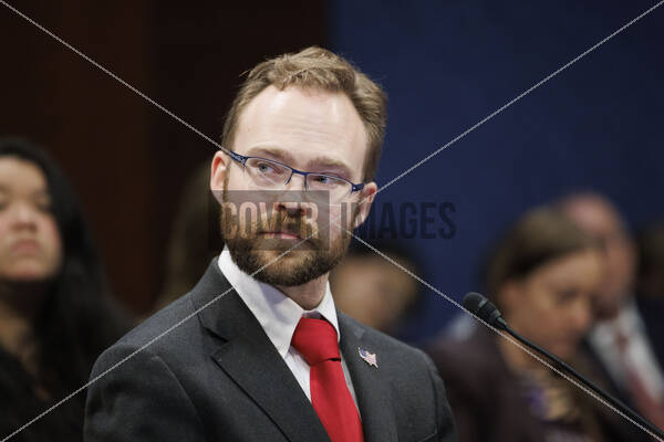 Tyler O’Neil, Managing Editor of The Daily Signal, gives remarks during a House Oversight Subcommittee on Delivering on Government Efficiency hearing on USAID, in the Capitol Building in Washington