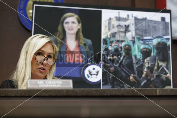 United States Representative Marjorie Taylor Greene (Republican of Georgia) is seen during a House Oversight Subcommittee on Delivering on Government Efficiency hearing on USAID, in the Capitol Building in Washington
