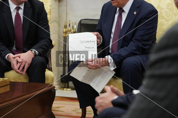 United States President Donald J Trump meets Prime Minister Keir Starmer of the United Kingdom in the Oval Office of the White House in Washington, DC