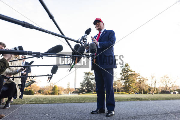 US President Donald Trump speaks to the media about his meeting with Ukrainian President Volodymyr Zelensky as he departs the White House in Washington, DC, USA, 28 February 2025. The Ukrainian leader was asked to leave the White House after Trump and Vice President JD Vance berated him during a meeting in the Oval Office.