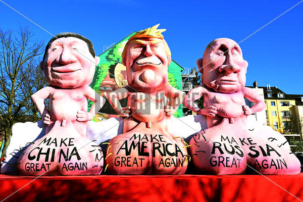 PersonInImage: China President Xi Jinping, Russian President Vladimir Putin and US President Donald J. Trump carnival float
