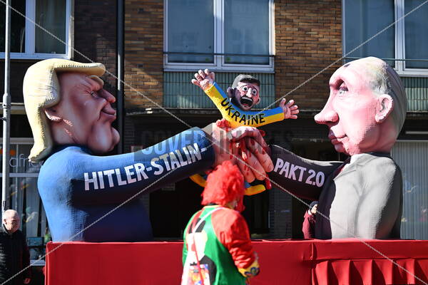 PersonInImage: Russian President Vladimir Putin, Ukraine President Volodymyr Zelenskyy and US President Donald J. Trump carnival float