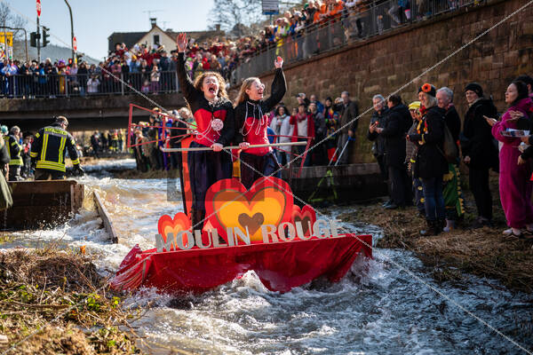 Yasmin Hettich and Jule Merk ride under the motto "Moulin Rouge" during the Da-Bach-na-Fahrt on the Schiltach. The participants ride their "Zuberboote" on the 400 meter long course. The aim is to arrive at the finish line with dry feet.