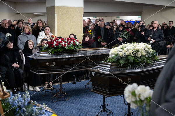 Headline: Ceremony for Ukrinform journalist Tetiana Kulyk and husband Pavlo Ivanchov killed in Russian drone attack