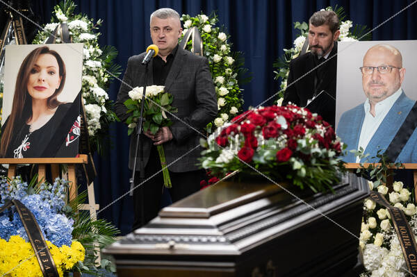 Headline: Ceremony for Ukrinform journalist Tetiana Kulyk and husband Pavlo Ivanchov killed in Russian drone attack