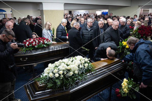 Headline: Ceremony for Ukrinform journalist Tetiana Kulyk and husband Pavlo Ivanchov killed in Russian drone attack