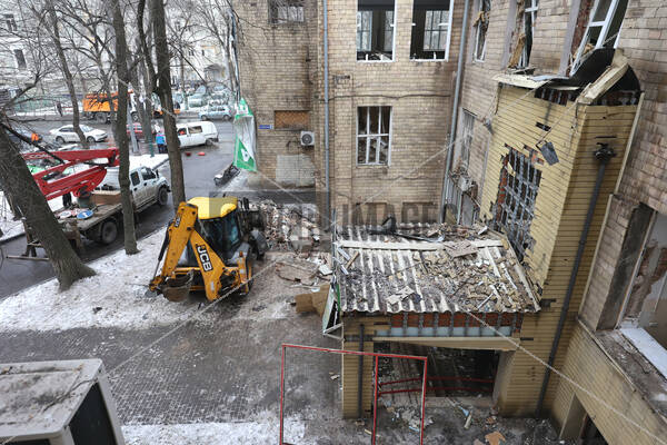 The building of a dental clinic damaged by a massive Russian drone attack on Kharkiv, Ukraine