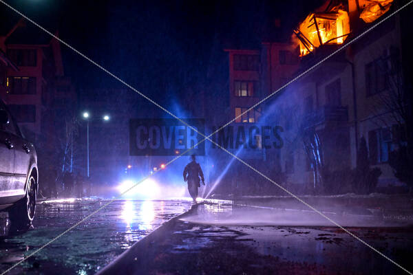 A rescuer is seen at the site of a Russian drone fall on a residential building, Zaporizhzhia, Ukraine