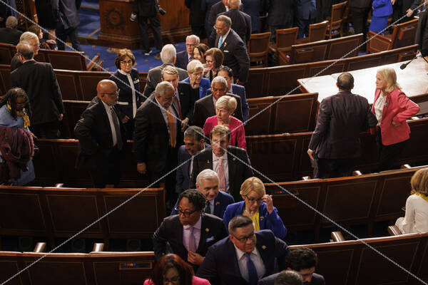 Democrats depart at the conclusion of US President Donald J. Trump’s first State of the Union address of his second term to a joint session of the US Congress in the Hall of the US House of Representatives in the US Capitol