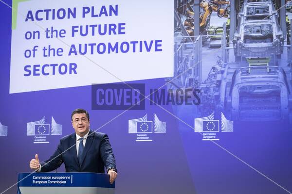 Commissioner Apostolos Tzitzikostas attends a press conference on the future of the automotive sector in Europe