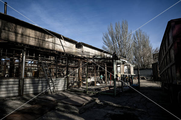 A workshop of the Palianytsia Volunteer Centre is destroyed by a nighttime strike of a Russian Shahed drone on March 8, Zaporizhzhia, Ukraine
